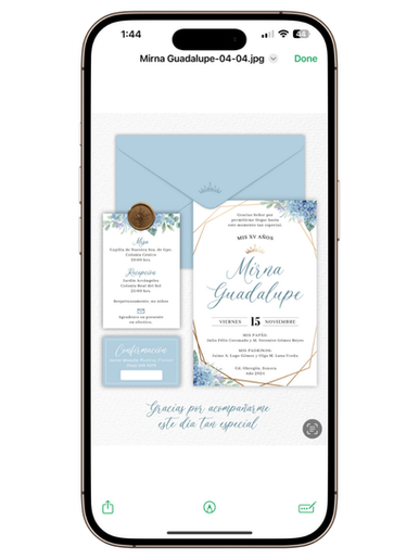 Las invitaciones digitales están listas en 8 días hábiles (después del pago y de enviar datos).